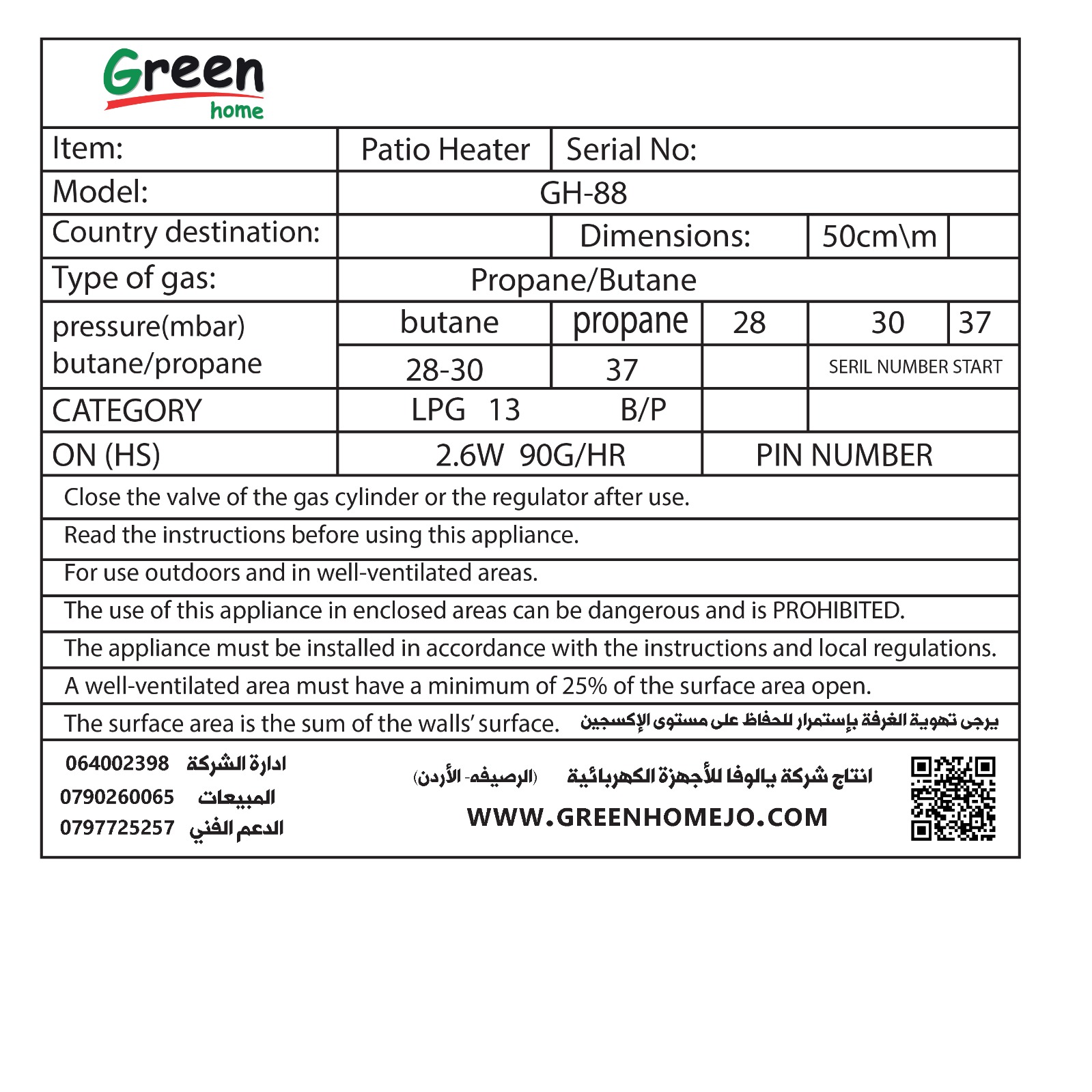 Product Name Al-Shamooseh Gas Heater /GH-88